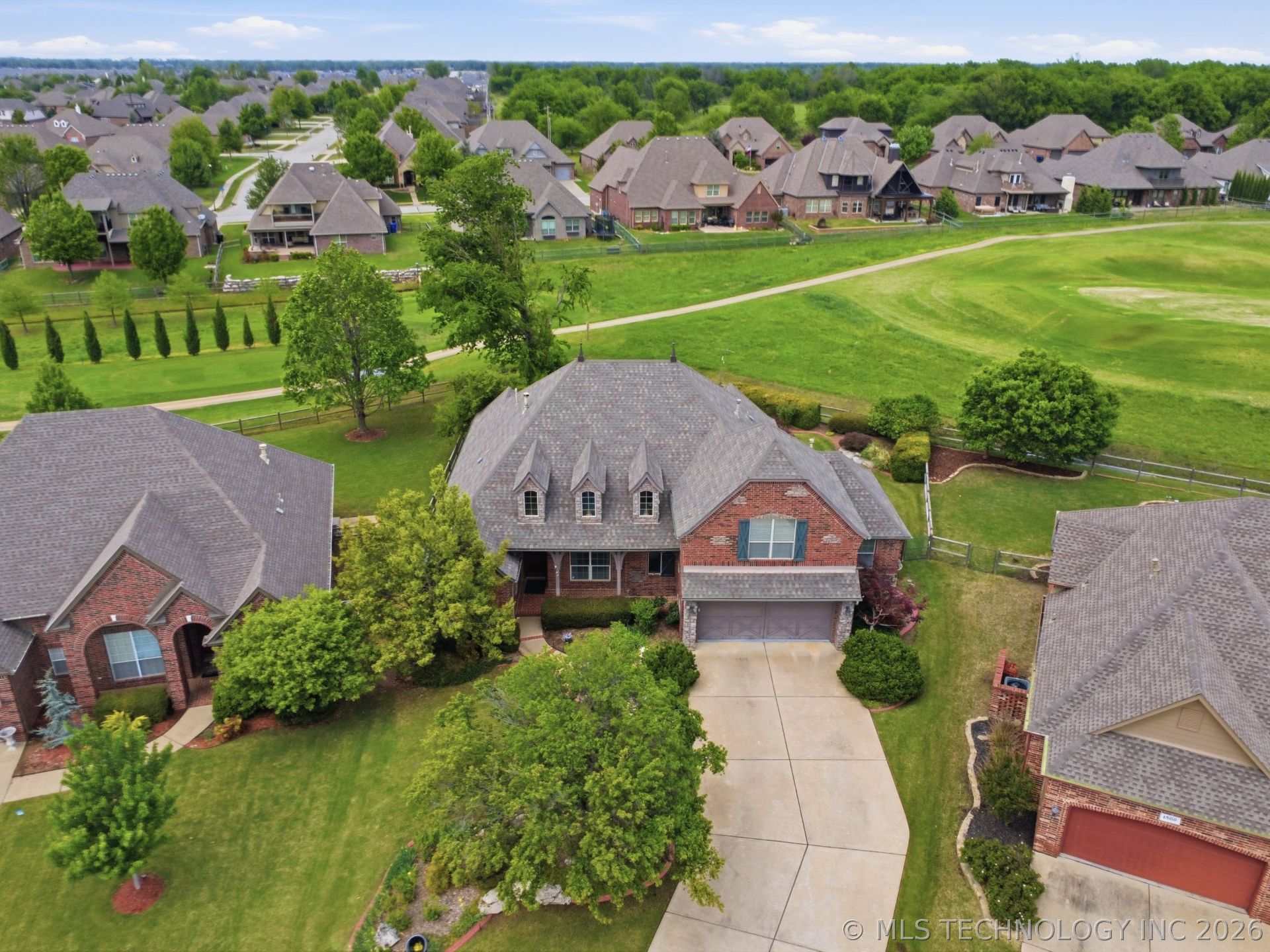 Beautifully maintained home on the golf course in sought-after Battle Creek! This stunning property offers exceptional curb appeal with full brick and stone exterior, mature trees, and professional landscaping, all set deep on the lot for added privacy. The thoughtfully designed floor plan features 3 bedrooms, 2 full baths, a private office, and the majority of living space on the main level. Upstairs, you'll find a spacious game room along with a huge walk-out attic providing incredible storage or expansion potential. Inside, you're welcomed by a formal dining room that opens seamlessly into the large living area, kitchen, and breakfast nook-perfect for entertaining. Expansive windows showcase beautiful backyard views and overlook the golf course. Recent updates include new LVT flooring, new kitchen countertops, and newer interior paint. The open-concept kitchen is a chef's delight with abundant counter space, center island, double ovens, and direct flow into the family room. The split floor plan offers a private primary suite featuring double vanities, soaking tub, and separate shower. Additional highlights include an oversized 2-car garage with workshop and ample storage, a large laundry room with extensive cabinetry, folding counter, and a charming stained glass window. Enjoy outdoor living on the covered front porch or the spacious backyard deck with serene golf course views.